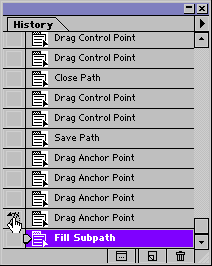 History Palette (มันจะอยู่ข้างล่างสุดน่ะ) คลิกช่องด้านหน้าของขั้นที่เกิดก่อน