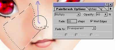 Brush ขนาดใหญ่และฟุ้งๆหน่อย ผมลาก History Brush ไปตามลูกศรในภาพนั่นล่ะ